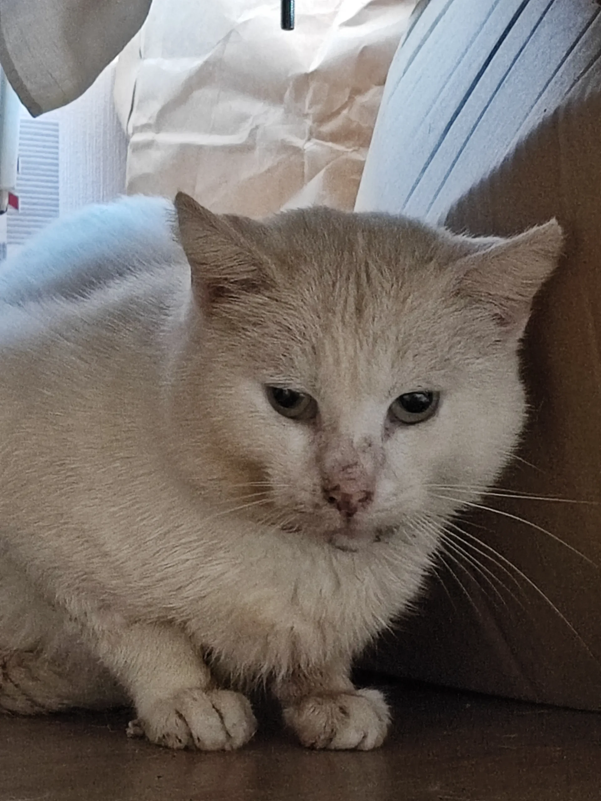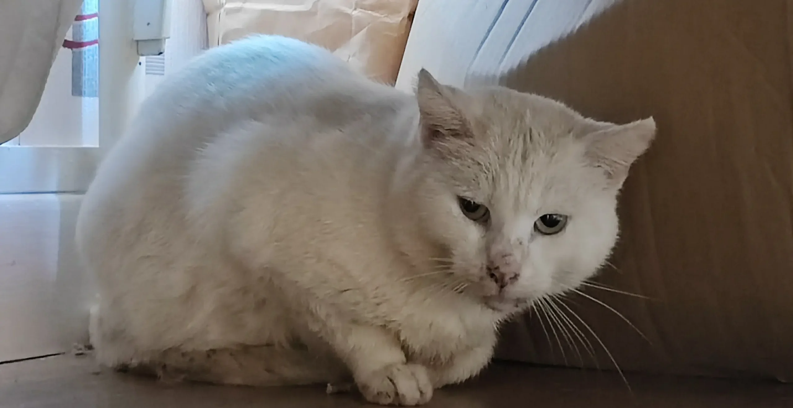 Coton est un chat âgé errant qui a vécu près d’un bâtiment d’appartements pendant plusieurs années, nourri par les habitants du quartier. Malgré tous les efforts déployés, personne ne parvenait à l’attraper jusqu’à ce qu’une résidente l’aide après qu’il soit tombé malade, facilitant sa capture. Il n’est pas adoptable pour l’instant et suit une convalescence pour retrouver confiance envers les humains.